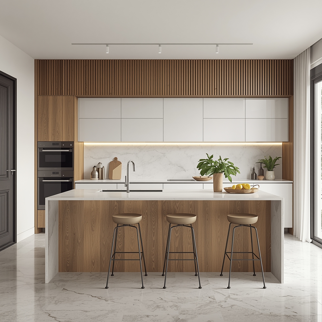Algunas veces, una pared blanca puede parecer austera, pero cuando decidí darle un giro a mi cocina blanca y madera moderna, comprendí que la luz puede jugar a tu favor. Una vez, me pasé horas buscando esos tonos perfectos de blanco. Por supuesto, no solo tenía que ser blanco “blanco”, sino un blanco que se sintiera cálido, que invitara a la cocina familiar.