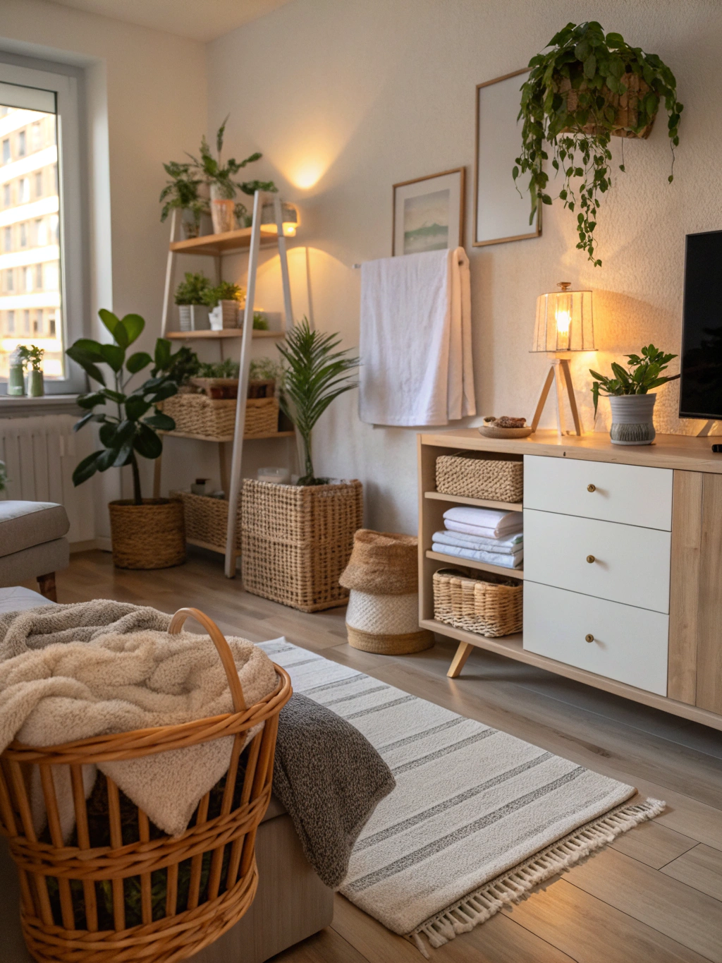 - Organisieren: Investiere in ein paar schöne Aufbewahrungslösungen. Im Grunde ist das keine Schande, wenn deine Unterwäsche in einem hübschen Korb aufbewahrt wird – die Aufbewahrung braucht auch Liebe, oder?