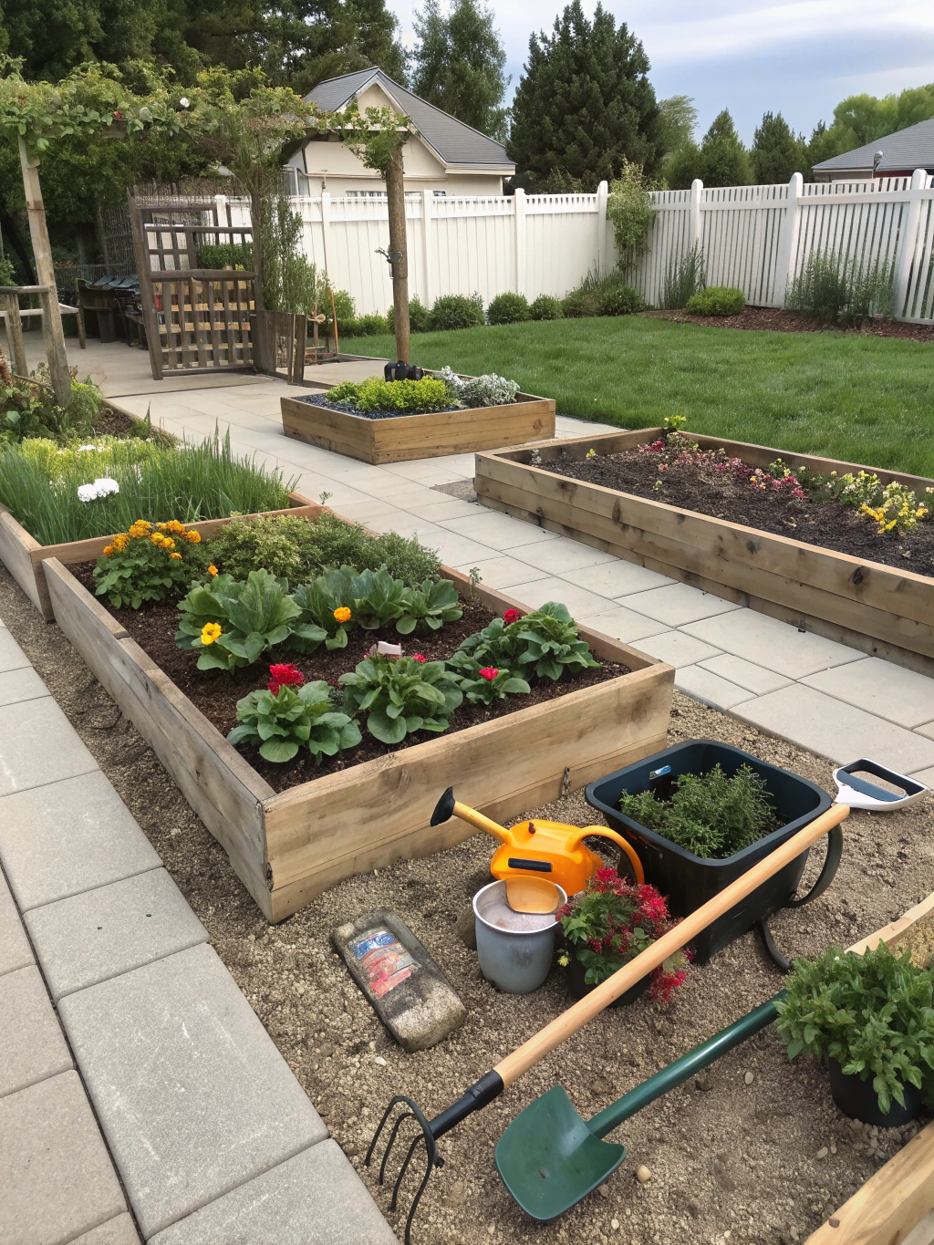Solche Beete lassen sich auch bequem mit Materialien aus dem Baumarkt oder wiederverwendeten Holzpaletten bauen. Ein kleiner Garten-Workshop in deinem Hinterhof, während die Kids im Planschbecken spielen – klingt gut, oder?