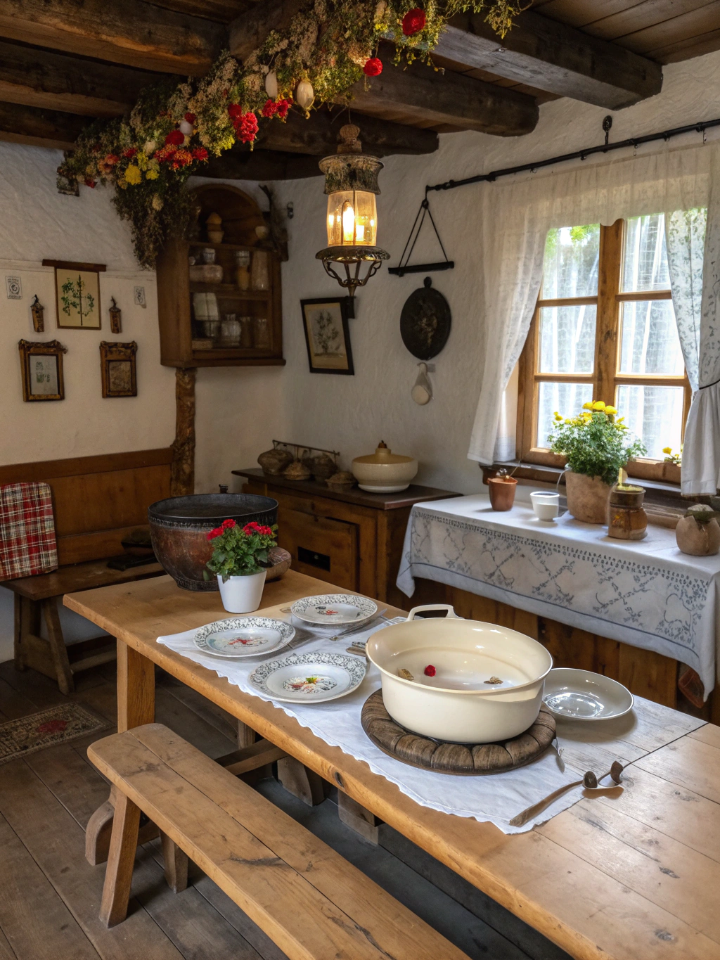 Das ist ganz wichtig: frische Kräuter! Ist es nicht toll, sie direkt in der Küche anzubauen? Stell dir die Kombination aus deiner Vintage Waage, einer alten Terrine und einem kleinen Kräutergarten auf der Fensterbank vor. Das Grün der Kräuter kontrastiert perfekt mit dem Holz und macht das Ganze lebendig.
